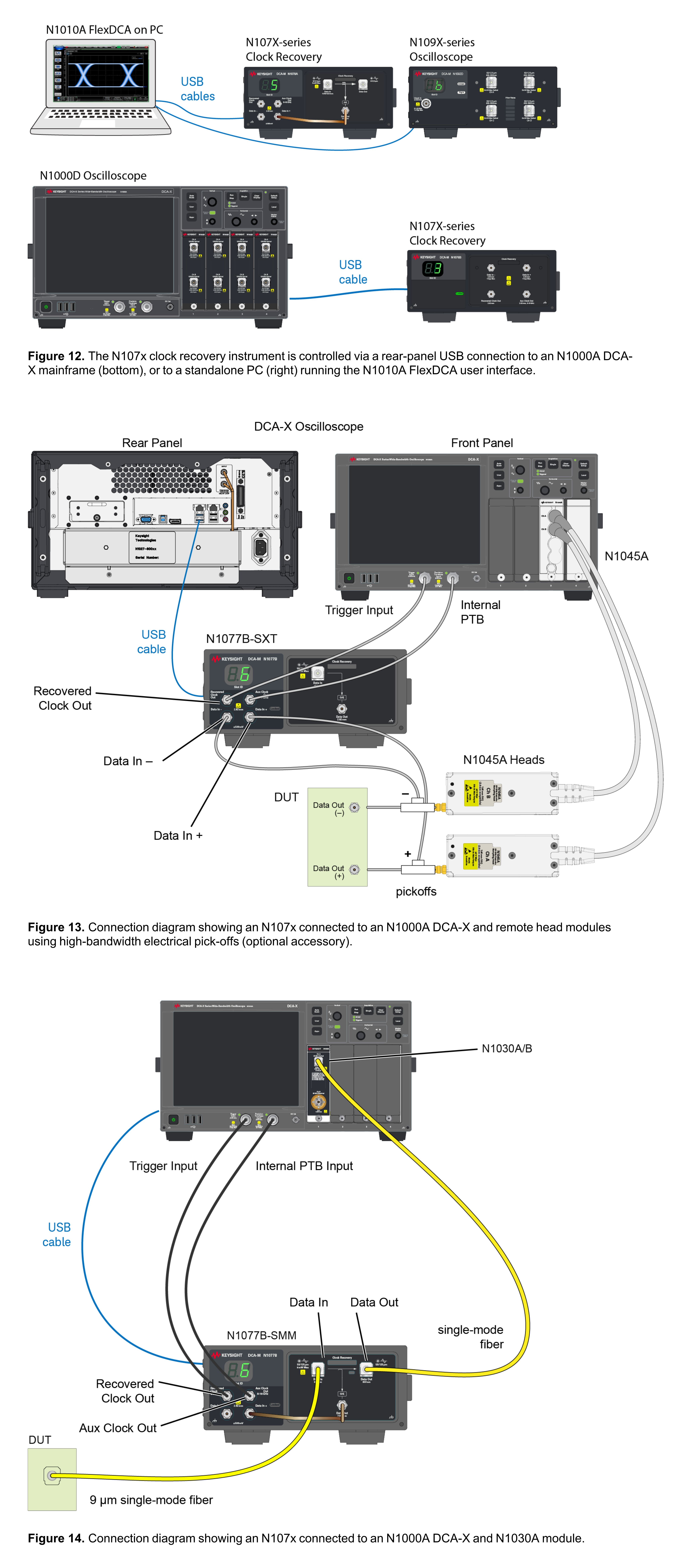 Keysight官網(wǎng)提供的N107X系列用戶手冊(cè)中包含了關(guān)于如何設(shè)置時(shí)鐘恢復(fù)DCA-M模塊的關(guān)鍵信息和指南。具體來(lái)說(shuō),用戶可以學(xué)習(xí)到如何進(jìn)行外部布線的示例。此外,手冊(cè)還提供了關(guān)于如何使用N1010A FlexDCA軟件通過(guò)簡(jiǎn)單的USB 2.0或3.0連接來(lái)控制N107X的信息。對(duì)于安裝方面,手冊(cè)中提到了需要一個(gè)用戶提供的PC運(yùn)行N1010A FlexDCA軟件,并且詳細(xì)說(shuō)明了如何將N107X系列DCA-M與N1092D連接,以及如何將待測(cè)量的光信號(hào)連接到相應(yīng)的接口。
